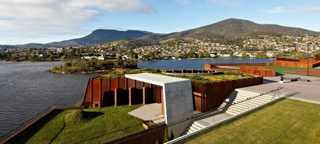 In contrast Hobart had no grand plan for the city’s transformation, and no requirement for a big fix. Instead it was the vision of one man, David Walsh, that brought MONA into being. Unlike the Guggenheim which appears to erupt from its landscape spraying reflected sunlight in every direction, MONA responds to its cool southerly climate by burrowing into its landscape, all darkness and tunnels, little of its architecture externally visible.